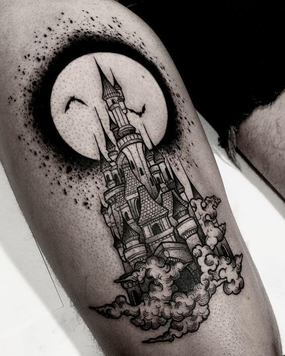 60 Haunted House Tattoo Designs For Men Spooky Spot Ink Ideas Haunted House Tattoo Home Tattoo Tattoo Designs Men